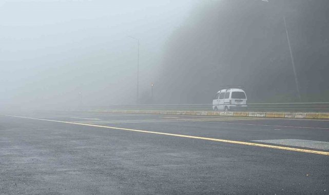 Türkiye'nin en önemli geçiş güzergahlarından biri olan Bolu Dağı geçişinde sis ve hafif yağmur yağışı sebebiyle görüş mesafesi 25 metreye kadar düştü.