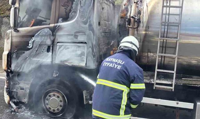 DÜZCE(İHA) – Düzce D100 karayolu Bolu Dağı mevkisinde motor kısmından tutuşan boş tanker alev alev yandı. Kısa sürede söndürülen tanker kullanılmaz hale geldi.