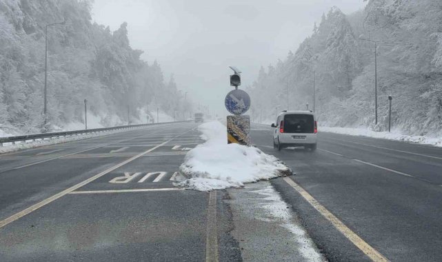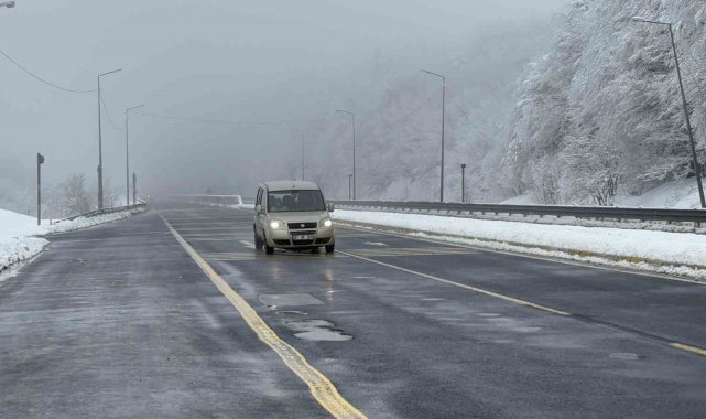 Türkiye'nin en önemli geçiş noktalarından biri olan Bolu Dağı geçişinde kar yağışı hafif şekilde etkili olurken ulaşım rahat sağlanıyor.