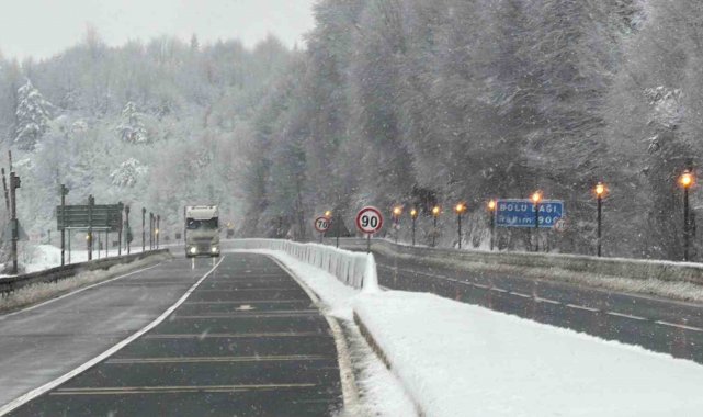Türkiye'nin en önemli geçiş güzergahlarından birisi olan Bolu Dağı'nda kar yağışı ile birlikte karla kaplanan yollar karayolları ekiplerince anında açılırken, bölgede yağış devam ediyor.