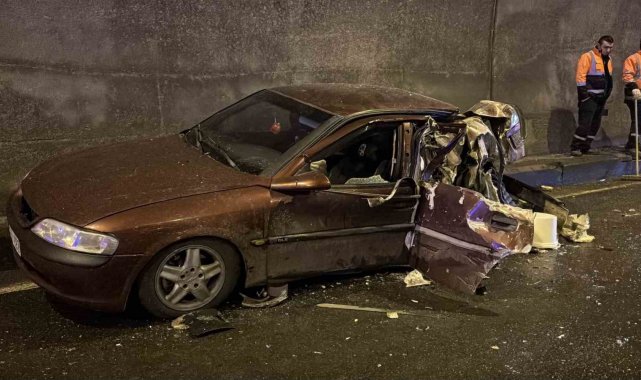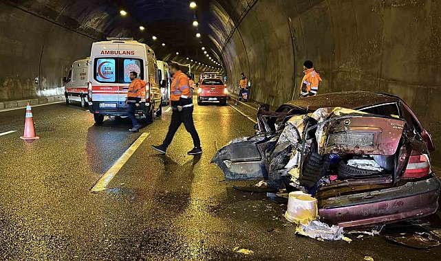 Bolu Dağı Tüneli içerisinde tırla çarpışması neticesinde hurdaya dönen otomobilde bulunan 5 kişi yaralandı.