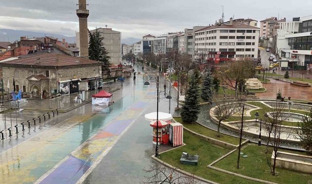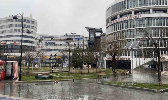 Bolu'da sabahın erken saatlerinde etkili olan yağmur, hafta sonunun da etkisiyle cadde ve sokakların boş kalmasına neden oldu.
