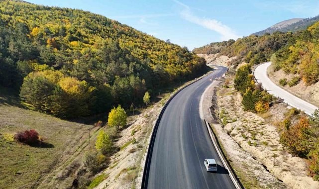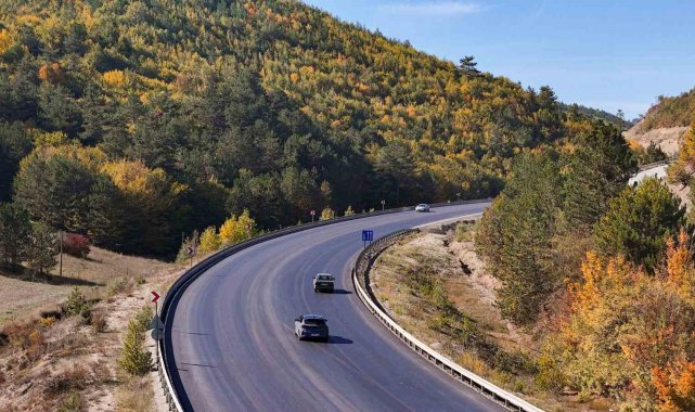 Bolu-Mudurnu kara yolunda sonbahar renkleriyle oluşan manzaralar, sürücülere görsel bir şölen sunuyor.
