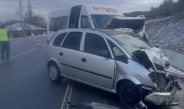 Bolu-Mudurnu kara yolunda otomobil ile minibüsün çarpışması neticesinde meydana gelen kazada 1'i ağır 10 kişi yaralandı.