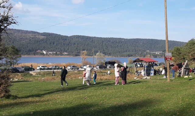 Hafta sonunu değerlendirmek isteyen binlerce kişi, sabah saatlerinden itibaren milli parka gelerek yürüyüş yaptı, piknik alanlarında vakit geçirdi. Ziyaretçi yoğunluğu nedeniyle Abant girişinde uzun araç kuyrukları oluştu. Dronla havadan görüntülenen Abant Gölü Milli Parkı'nda sarı, kırmızı ve yeşilin tonlarının oluşturduğu görsel şölen kartpostallık manzaralar ortaya çıkardı. Göl çevresinde yürüyüş yapan vatandaşlar, sonbaharın tadını çıkartırken bol bol fotoğraf çektirdi.