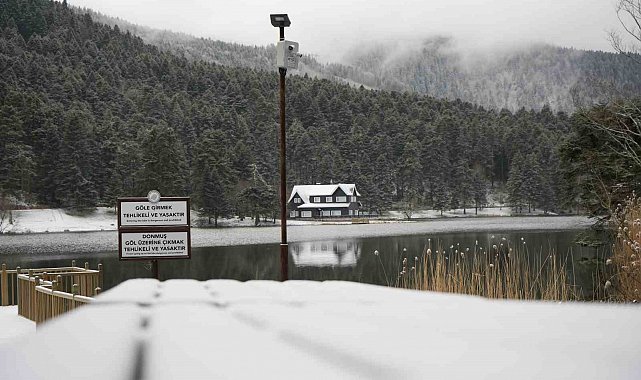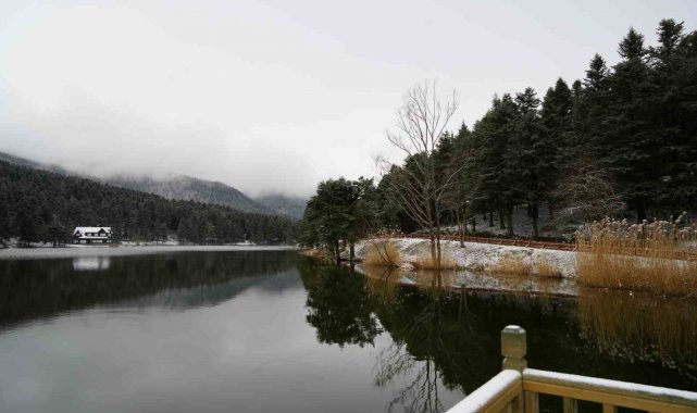 Bolu'nun incisi olarak tabir edilen Gölcük Tabiat Parkı beyaz örtüyle kaplandı.