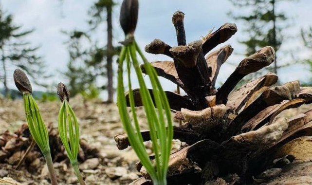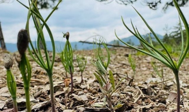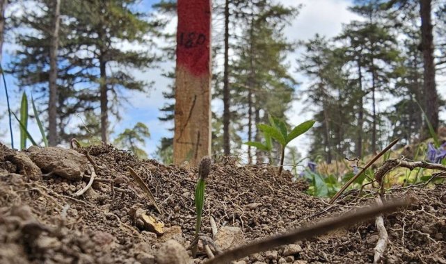 Bolu'nun Mudurnu ilçesinde Orman İşletme Müdürlüğü tarafından yürütülen Karaçam Doğal Gençleştirme çalışmaları kapsamında sahalarda çimlenmelerin başladığı gözlemlendi.