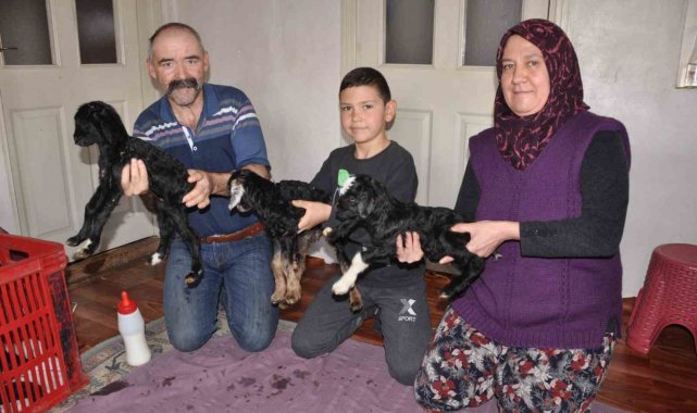 Bolu'nun Mudurnu ilçesinde küçükbaş hayvancılık ile geçimini sağlayan ailenin keçisi üçüz doğurdu. Aileye neşe kaynağı olan sağlıklı oğlaklar, evde biberonla besleniyor.
