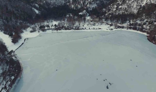 Amasya'da bulunan Boraboy Gölü'nün yüzeyi soğuk havanın etkisiyle buz tuttu. Amasya Valiliği, turizm cenneti gölün görüntülerini paylaştı.