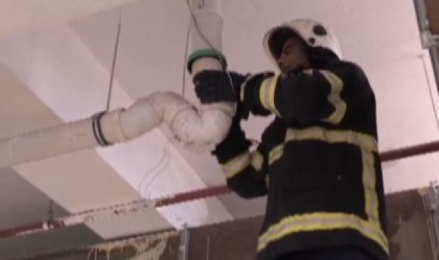 Boru içinde mahsur kalan yavru kedinin yardımına itfaiye ekipleri yetişti