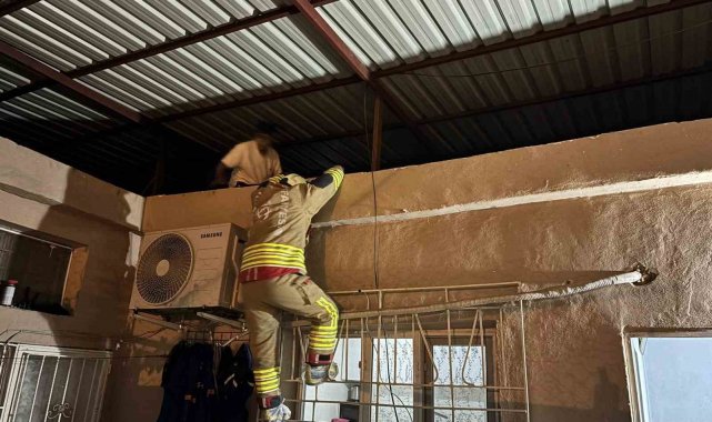 Hatay'ın İskenderun ilçesinde bir evin havalandırma borusunda mahsur kalan kedi, duvarın kırılmasıyla kurtarıldı.