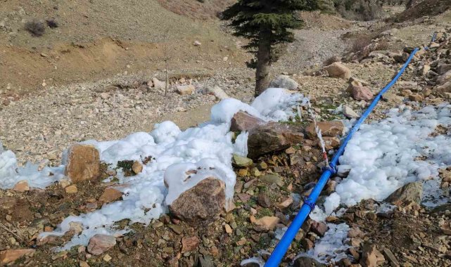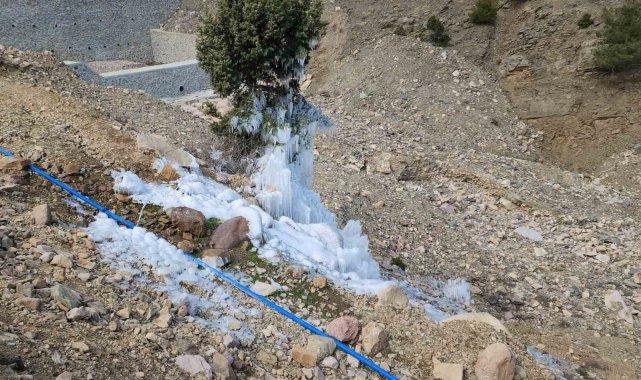 Borudan sızan suyla çam ağacı buzdan ağaca döndü