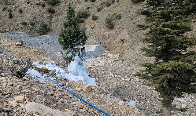 Çam ağacının buzla kaplandığını ifade eden Ömer Çakmak, "Yağış yoktu, hava soğuktu. Burada içme suyu hattında kırık vardı. Oradan su sızınca rüzgarın etkisiyle ağacın üzerine kadar su gitmiş. Su soğuk havanın etkisiyle ağacın üzerinde buz tuttu" dedi.