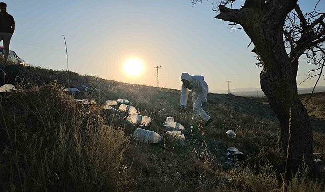 Kayseri'nin İncesu ilçesinde boş araziye bırakılan siyah sıvı dolu bidonlar vatandaşları tedirgin ederken, yapılan incelemede sıvıların küçükbaş hayvanların memelerini temizlemek için kullanılan kimyasal madde olduğu tespit edildi.
