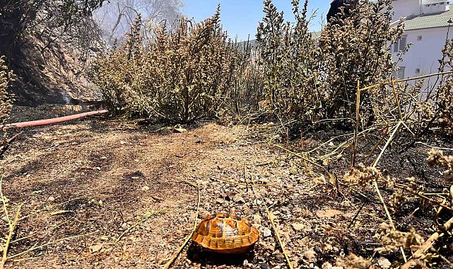 Ekiplerin soğutma çalışmaları sürerken yangında bir kaplumbağanın alevlere teslim olarak telef olduğu görüntülendi.