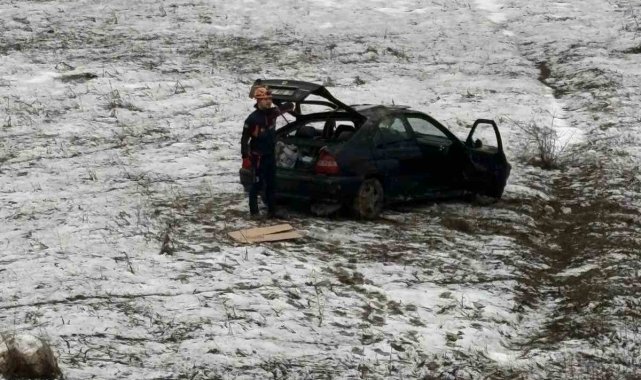 Boş araziye uçan otomobilin sürücüsü yaralandı