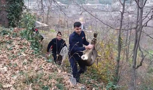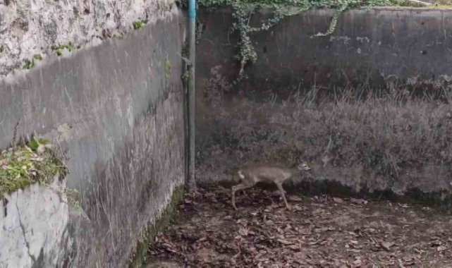 Amasya'da boş sulama havuzuna düşen yavru karaca, itfaiye ekipleri tarafından kurtarıldı.