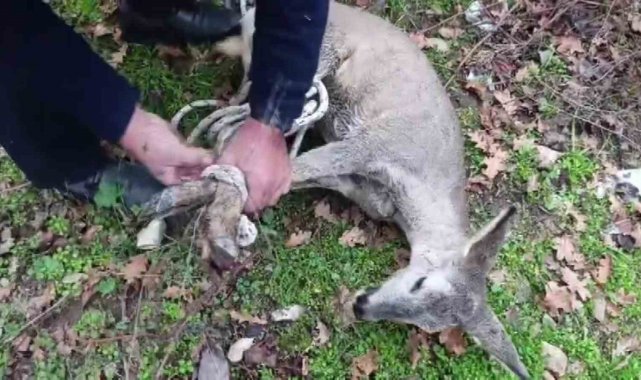 Boş havuza düşen yavru karacayı itfaiyeciler kurtardı
