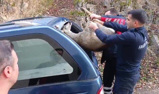 Göllü Bağları Mahallesi'nde boş haldeki sulama havuzuna yavru karacanın düştüğünü fark eden vatandaşların ihbarı üzerine Amasya Belediyesi itfaiye ekipleri bölgeye sevk edildi. Havuza merdivenle inen itfaiye ekipleri, karacayı tutup ayaklarını iple bağlayarak yukarı çıkardı. Yavru karaca, yapılan ilk kontrolün ardından yaralanan ayağının tedavisi için Doğa Koruma ve Milli Parklar Şubesi ekiplerine teslim edildi. Karacanın durumunun iyi olduğu belirtildi.