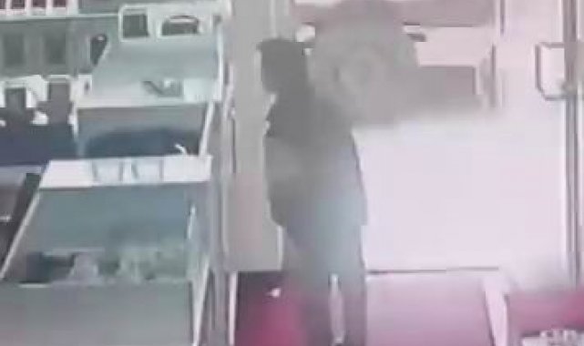 Diyarbakır'da bir çocuk, girdiği telefoncu dükkanında, masanın üzerine çıkıp vitrinde bulunan 2 telefonu çaldı. O anlar cep telefonu kamerasına yansıdı.