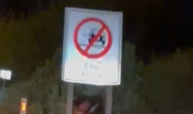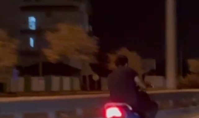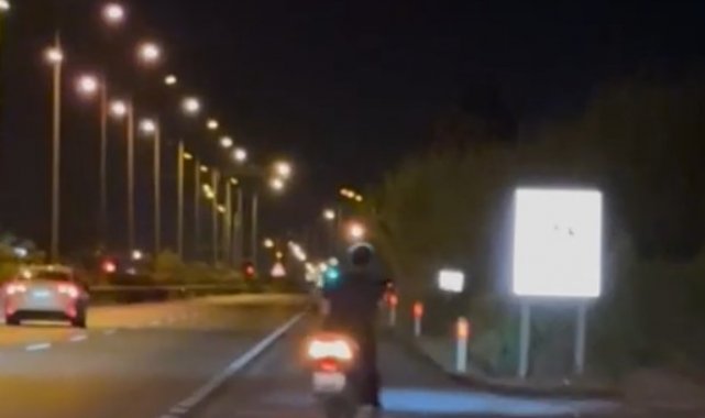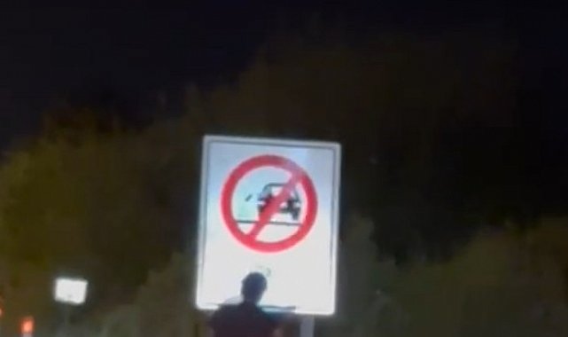 Diğer taraftan motosiklet sürücüsünün dörtlü sinyal lambalarını yakıp yolda uzun süre şerit değiştirerek ilerlediği, trafik güvenliğini tehlikeye düşürdüğü ve tabelaya çarpma anı aynı istikamette seyir halindeki bir otomobildekiler tarafından cep telefonuna kaydedildi.
