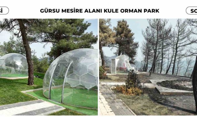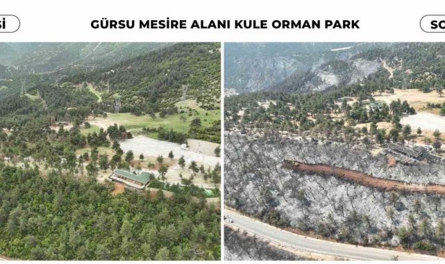 Gürsu ilçesinde çıkan ve tarihinin en büyük felaketlerinden birisi olarak değerlendirilen orman yangını sonrası, ortaya çıkan manzaralar yürek burktu. Dron ile görüntülenen esik yemyeşil ormanlık alının küle dönmüş son hali herkesi duygulandırdı. Katırlı Dağı'nın eteklerinin kapkara olduğu ve tüm güzel yeşil alanların küle döndüğü görüldü. Özellikle İğdir Mahallesi sınırlarında yer alan Gürsu Belediyesi'nin 80 dönümlük dev mesire alını da büyük zarar gördü. Seyir terasları 150 kişilik restoran ve balon evleri ile şehrin en güzel bölgesi, yerini en acı görüntülere bıraktı.