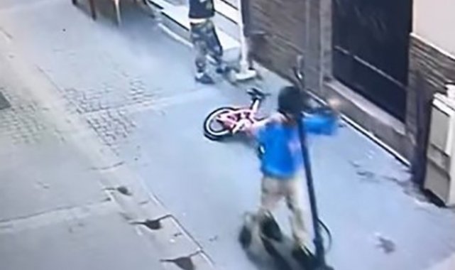 Kuşadası'nda iki küçük çocuğun scooter'ı çalıp bölgeden uzaklaşması ise çevredeki bir iş yerinin kamerasına yansıdı. Görüntülerde çocuklardan birinin boyundan büyük elektrikli Scooter'a binip gitmesi yer alırken, diğer çocuğunun elindeki oyuncak scooter'i bırakması yer aldı.