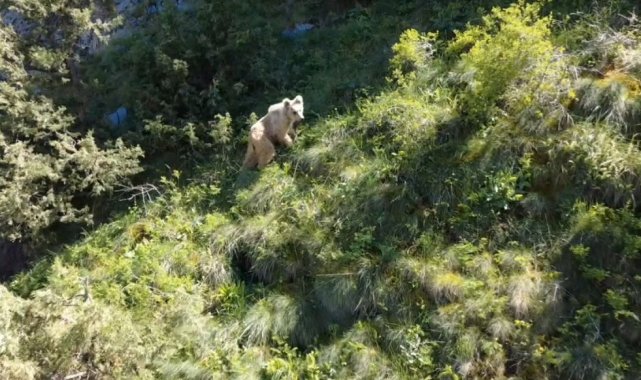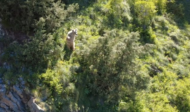 Erzurum'un Oltu ilçesinde doğa tutkunlarının yüzünü güldüren bir olay yaşandı. Yaban hayatındaki bir boz ayı kameraya yakalandı.