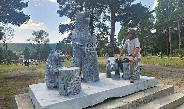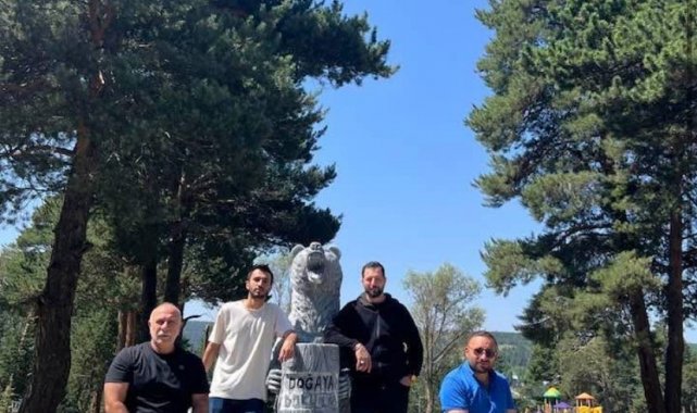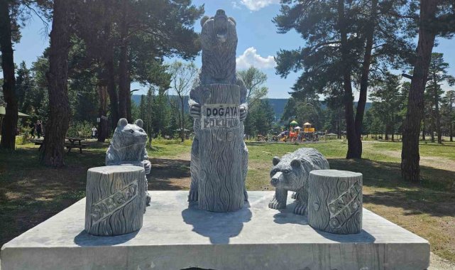 Kars'ın tarihi yapısı, kayak merkezi ve ormanlık alanı ile dikkat çeken turizm cenneti Sarıkamış ilçesine boz ayı heykeli yapıldı.
