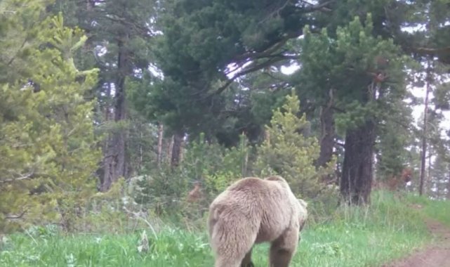 Ardahan'da Yalnızçam ormanlık alanına kurulan fotokapana yaban hayvanlarının doğal yaşamdaki görüntüleri yansıyor. Fotokapana son olarak ormanlık arazide gezen bir bozayının ot yiyerek beslendiği anlar yansıdı.