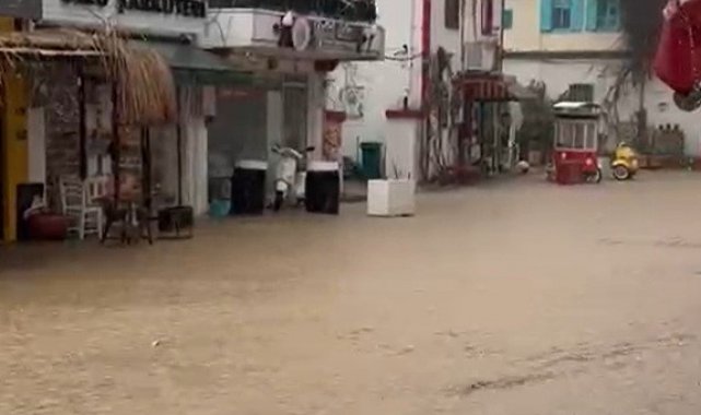 Bozcaada'da sokaklar göle döndü