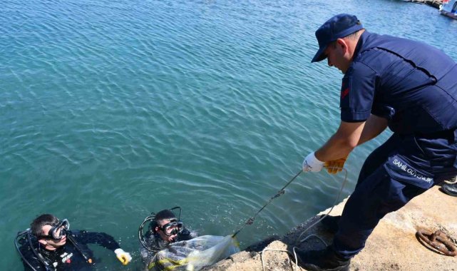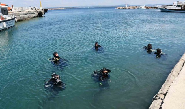 Çanakkale'nin Bozcaada ilçesinde dalgıçlar limanda deniz dibi temizliği gerçekleştirdi.