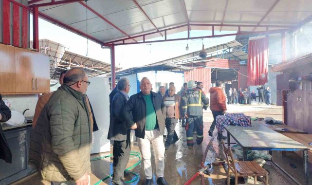 Aydın'ın Bozdoğan ilçesinde bir ev, çıkan yangında alevlere teslim olurken, soğutma çalışmalarının devam ettiği bölgeye gelen Bozdoğan Belediye Başkanı Mustafa Galip Özel, incelemelerde bulundu.