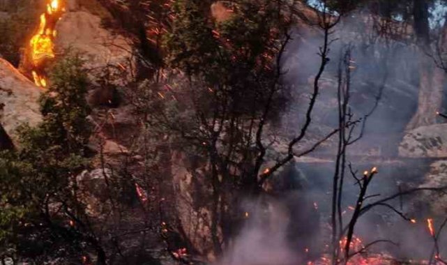 Makilik alandaki yangın henüz kontrol altına alınamazken, tüm ekiplerin yoğun çabasıyla söndürme çalışmaları karadan aralıksız devam ediyor.