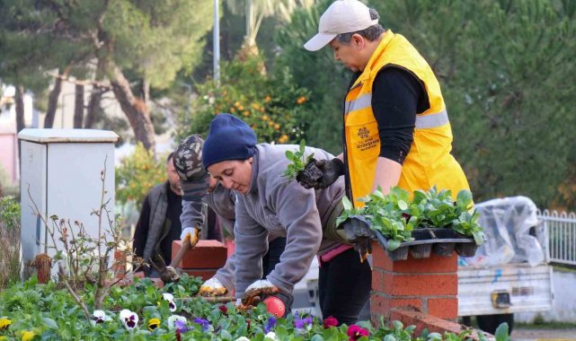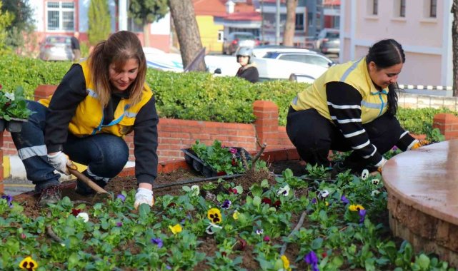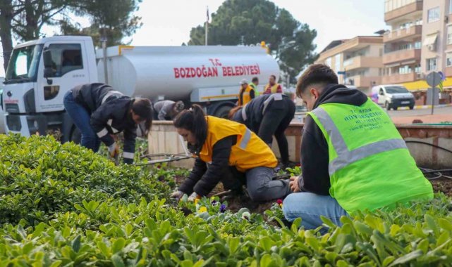 Bozdoğan'da mevsimlik çiçeklerin dikimi yapıldı