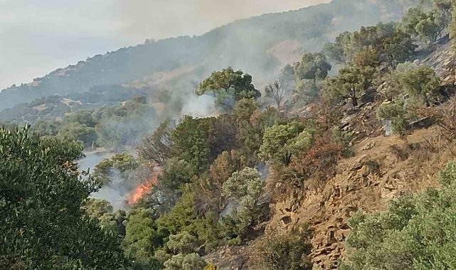 Aydın'ın Bozdoğan ilçesinde çıkan ve rüzgarın etkisiyle büyüyen orman yangınına müdahale sürüyor.