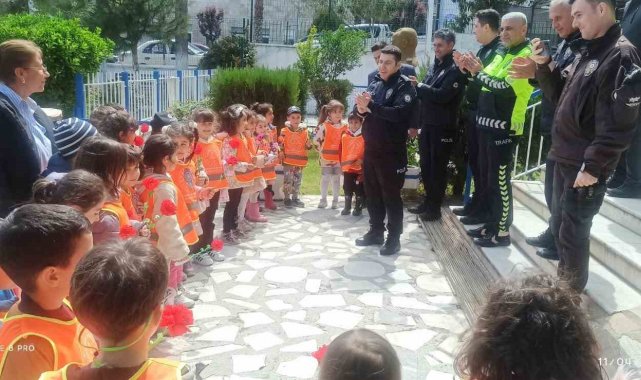 Aydın'ın Bozdoğan ilçesinde anaokulu öğrencileri, Polis Haftası kapsamında İlçe Emniyet Amirliği'ni ziyaret etti.