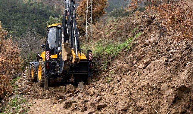 Aydın'ın Bozdoğan ilçesinde yağmur ve fırtına sonrası toprak kayması meydana gelen yol yeniden ulaşıma açıldı