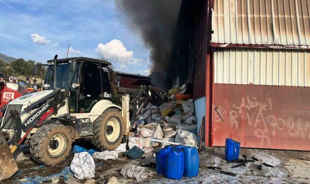 Bozdoğan'daki kıl çadır imalathanesinde çıkan yangına müdahale sürüyor