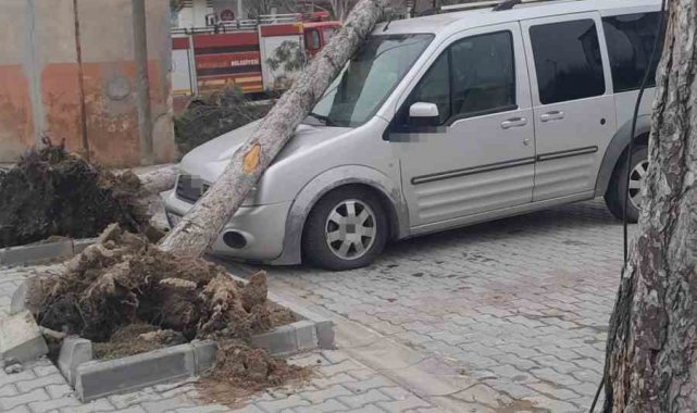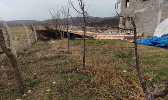Konya'nın Bozkır ilçesinde etkili olan fırtına çatıları uçurdu, ağaçları devirdi.