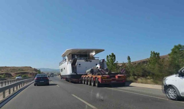 Denize kıyısı olmayan Sivas'ta ilginç bir manzara yaşandı. Sivas-Kayseri karayolunda ilerleyen büyük yat, görenlerin dikkatini çekti.