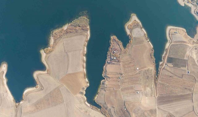 Kırıkkale'de, Kızılırmak'ın beslediği Kapulukaya Barajı'nda kıvrımlı kıyı hatları ve geniş su dokusunun oluşturduğu doğal manzara havadan görüntülendi.