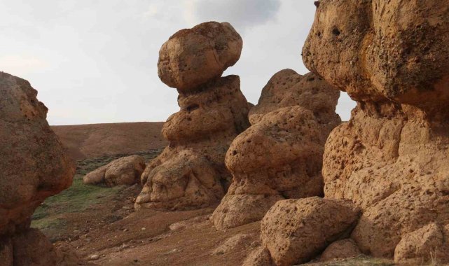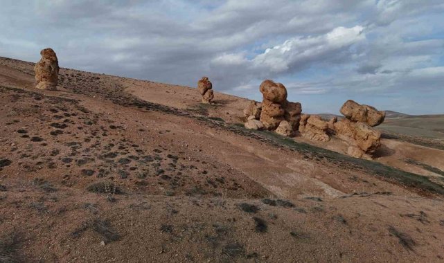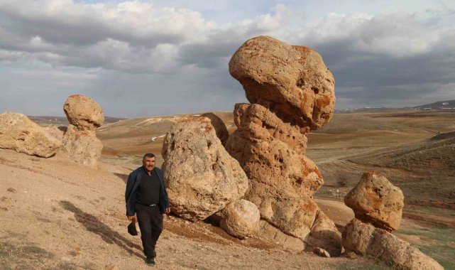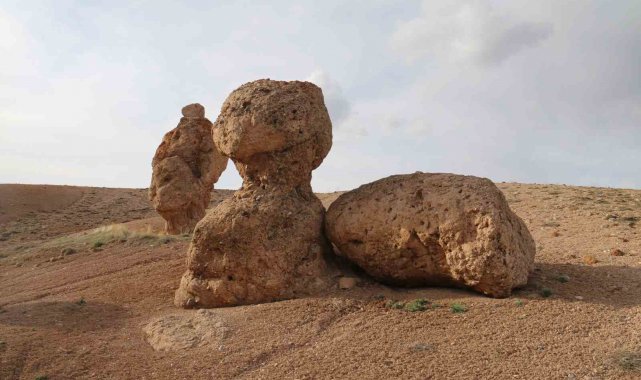 Bozkırın ortasındaki devasa kayalar köylünün merak konusu oldu