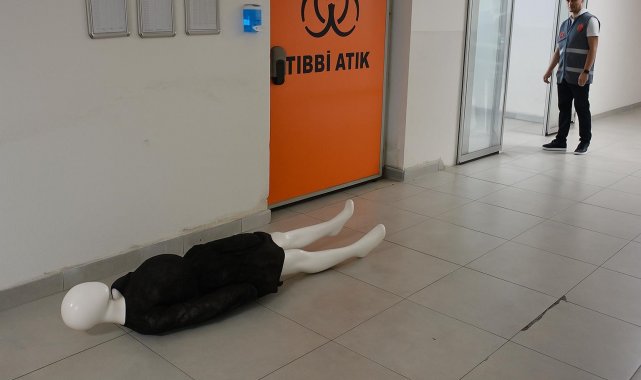 Tatbikat saneryosunda hastanede Tıbbi Atık Ünitesi'nde çalışan bir personelin kimyasal bir maddeye maruz kaldığı ve baygın halde bulunduğu ihbarı üzerine, hızlıca harekete geçildi. Hastane Afet Planı (HAP) çerçevesinde değerlendirmesinin ardından, olay yeri güvenlik altına alınarak olay yönetim ekibi toplandı yolcu. Risk durumu değerlendirilmesi sonrası, olayın ciddiyeti göz önünde bulundurularak MOR Kod verilerek hazırlık aşaması başlatıldı. Yapılan analizler sonucunda, olayın kimyasal bir tehlike taşıdığı belirlenmiş ve Turuncu Kod verilerek bölgesel ve kurumsal alarm seviyesine geçirildi.