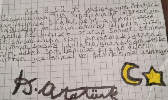 Bozüyük'te 4. sınıf öğrencilerinden şehit ailelerine ve gazilere duygulandıran mektup