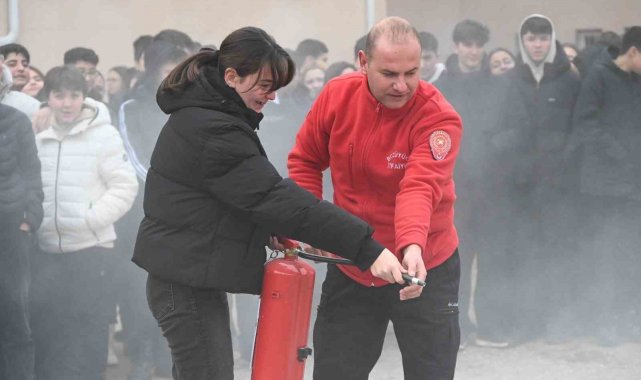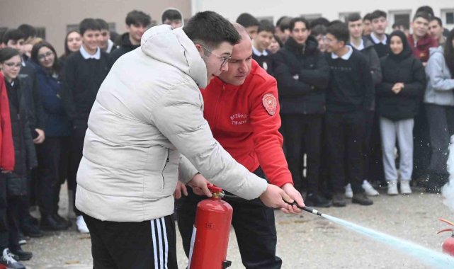 Okul bahçesinde yapılan yangın eğitimine okul öğrencileri ile öğretmenler katıldı. Eğitim çalışmasında öğrencilere yangına karşı alınacak önlemler, yangın çeşitleri ve olası yangın durumunda neler yapılması gerektiği gibi bilgilerin yanı sıra yangın tüpü ve nasıl kullanılması gerektiği anlatılarak kullanımı uygulamalı olarak gösterildi. Yangın eğitiminin sonunda öğrenciler yangın tüpünü kullanarak yangın söndürme tatbikatı yaptı.