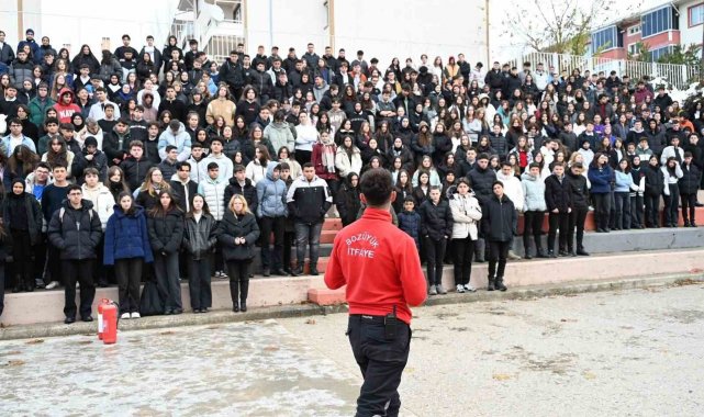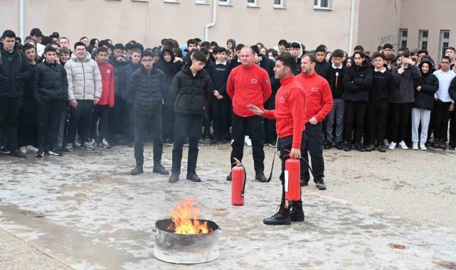 Bozüyük Belediyesi İtfaiye Müdürlüğü'nde görevli personel tarafından Kumral Abdal Anadolu Lisesi öğrencilerine uygulamalı yangın eğitimi verildi.