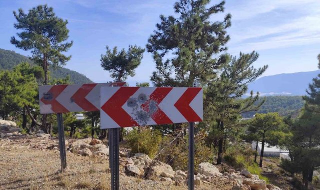 Bozyazı yayla yolunda trafik levhalarına kurşunlu saldırı