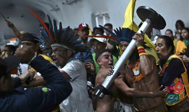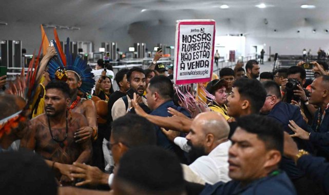 Brezilya'nın Belem kentinde aralarında yerlilerin de bulunduğu yüzlerce eylemci, iklim değişikliği ve ormanların korunmamasını protesto etmek için bir araya geldi. Yerel kıyafetler de giymiş olan protestocular, Belem'de düzenlenen Birleşmiş Milletler (BM) İklim Değişikliği Çerçeve Sözleşmesi 30. Taraflar Konferansı'nın (COP30) zirve alanına geldi. "Topraklarımız satılık değildir" yazılı pankartlar ve bayraklar taşıyan, toprak haklarına ilişkin taleplerini vurgulayan öfkeli kalabalık, daha sonra zirve alanının ana girişinde bulunan barikatları aşarak güvenlik görevlileri ile çatıştı. BM tarafından yapılan açıklamada, taraflar arasında yaşanan çatışmada 2 güvenlik görevlisinin hafif yaralandığı ve etkinlik alanında küçük çaplı hasar oluştuğu belirtilerek, "BM ve Brezilyalı güvenlik görevlileri bütün güvenlik protokolleri kapsamında bölgenin korunma altına alınması için çeşitli önlemler aldı" ifadeleri kullanıldı. Bir güvenlik görevlisi yaşananların ardından yaptığı açıklamada, kalabalıktan fırlatılan yabancı bir maddenin başına isabet ettiğini belirtti.