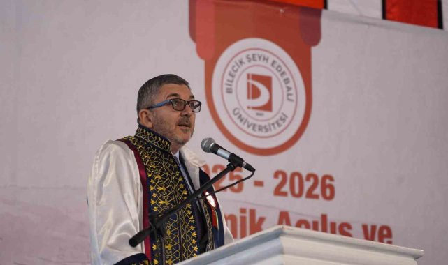 Açılış konuşması yapan BŞEÜ Rektörü Prof. Dr. Zafer Asım Kaplancıklı, "Kuruluşundan bu yana geçen sürede üniversitemiz, 1 enstitü, 11 fakülte, 7 meslek yüksekokulu ve 1 yüksekokul ile güçlü bir akademik yapıya ulaşmıştır. Bugün itibarıyla bünyesinde yaklaşık 22 bin öğrenci, 817'si akademik olmak üzere 1383 personel bulunan üniversitemiz, köklü tarihimizin ve kadim kültürümüzün izlerini taşıyan Bilecik'te, ilim ve irfanın merkezi olma yolunda kararlı adımlarla ilerlemektedir. Benimsediğimiz vizyon ile; kaliteli eğitim-öğretim hizmetlerimiz ve özgün bilimsel çalışmalarımızla tercih edilen, köklü kurum kültürüyle geleneği olan, bulunduğu şehirle bütünleşerek geleceğe yön veren bir üniversite olma hedefimize kararlı adımlarla yürüyoruz. Bizler, Şeyh Edebali'nin, 'Dünya senin gözlerinin gördüğü gibi büyük değildir. Bütün fethedilmemiş gizemler, bilinmeyenler, görülmeyenler ancak senin fazilet ve erdemlerinle gün ışığına çıkacaktır' sözünü şiar edinerek; insan odaklı, yenilikçi, üretken ve evrensel değerlerle donanmış bir yükseköğretim anlayışını benimsemekteyiz. Bu doğrultuda, çağın gereklerine uyum sağlayabilen, değişime yön verebilen, bilimsel bakış açısına sahip, sanata ve spora duyarlı ve kadim değerlerimize bağlı bireyler yetiştirmek için çalışıyoruz. Sizler, üniversitemizin en güçlü yönünü temsil ediyorsunuz. Akademik üretkenliğiniz, yayınlarınız, projeleriniz ve öğrencilerimize verdiğiniz rehberlik, bizi geleceğe taşıyan en önemli kaynaktır. Araştırma merkezlerimiz, TÜBİTAK ve Avrupa Birliği destekli projelerimiz ve sanayi iş birliklerimizle, bilgi üretiminde öncü ve çözüm odaklı bir üniversite olma yolunda emin adımlarla ilerliyoruz. Son yıllarda üniversitemiz; bilimsel yayın sayısındaki artış, uluslararası iş birliklerinin gelişimi ve toplumsal katkı projelerindeki başarısıyla dikkat çekmektedir. Son yıllarda uluslararası nitelikli yayın sayısındaki olağanüstü artışa bağlı olarak, üniversitemizin küresel değerlendirme kuruluşlarındaki sıralaması ciddi bir sıçrama göstermiştir. Son iki yılda ise öğretim üyelerimiz, ulusal ve uluslararası fonlardan desteklenen 125'in üzerinde proje yürütmüş, bu kapsamda sadece AB Erasmus+ projelerimiz 750 bin Euro destek almaya hak kazanmıştır. Yeni akademik yılda da disiplinler arası çalışmaları desteklemeye, uluslararası indekslerde yer alan yayınlarımızı artırmaya ve yenilikçi araştırma alanlarını teşvik etmeye devam edeceğiz" dedi.
